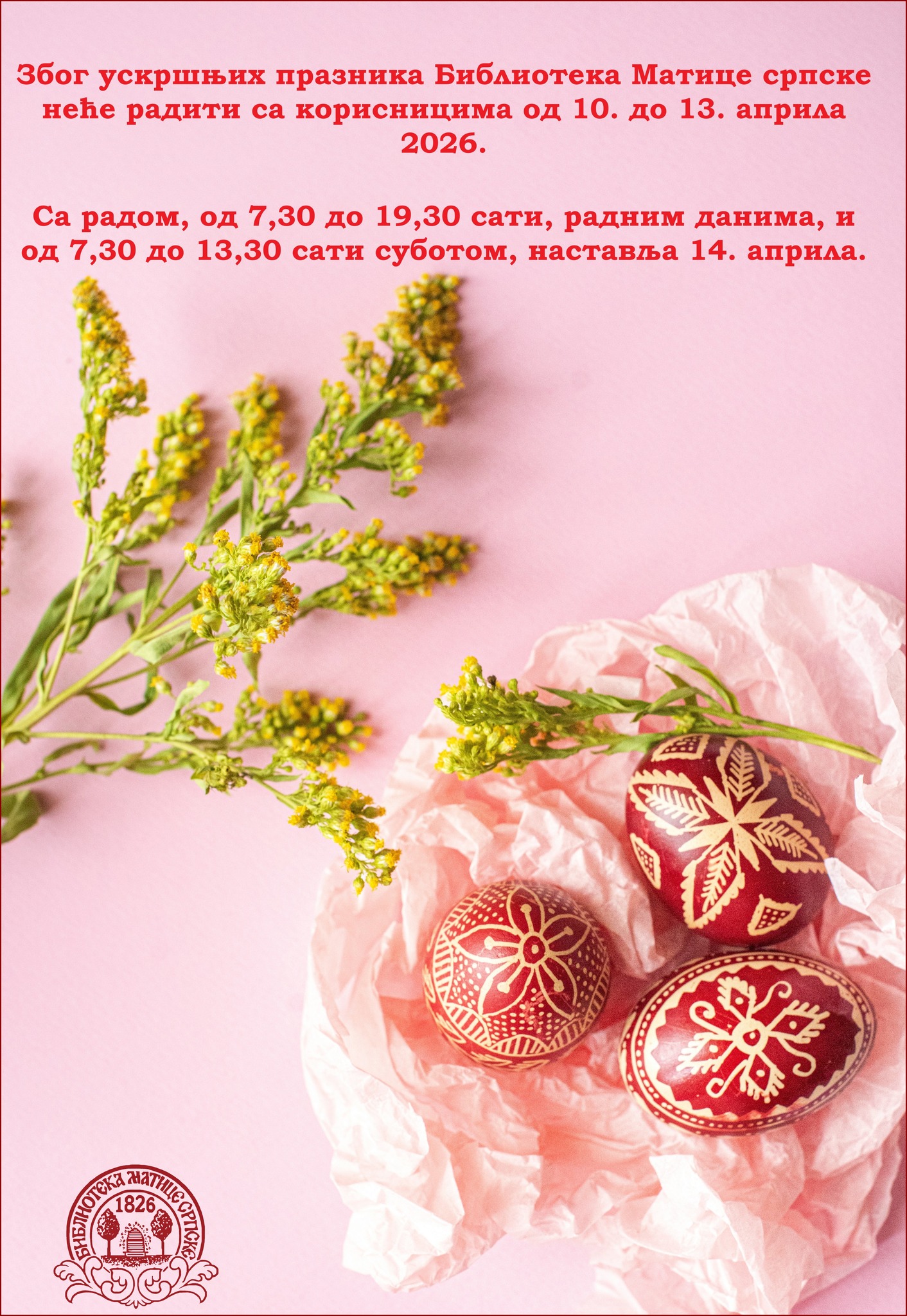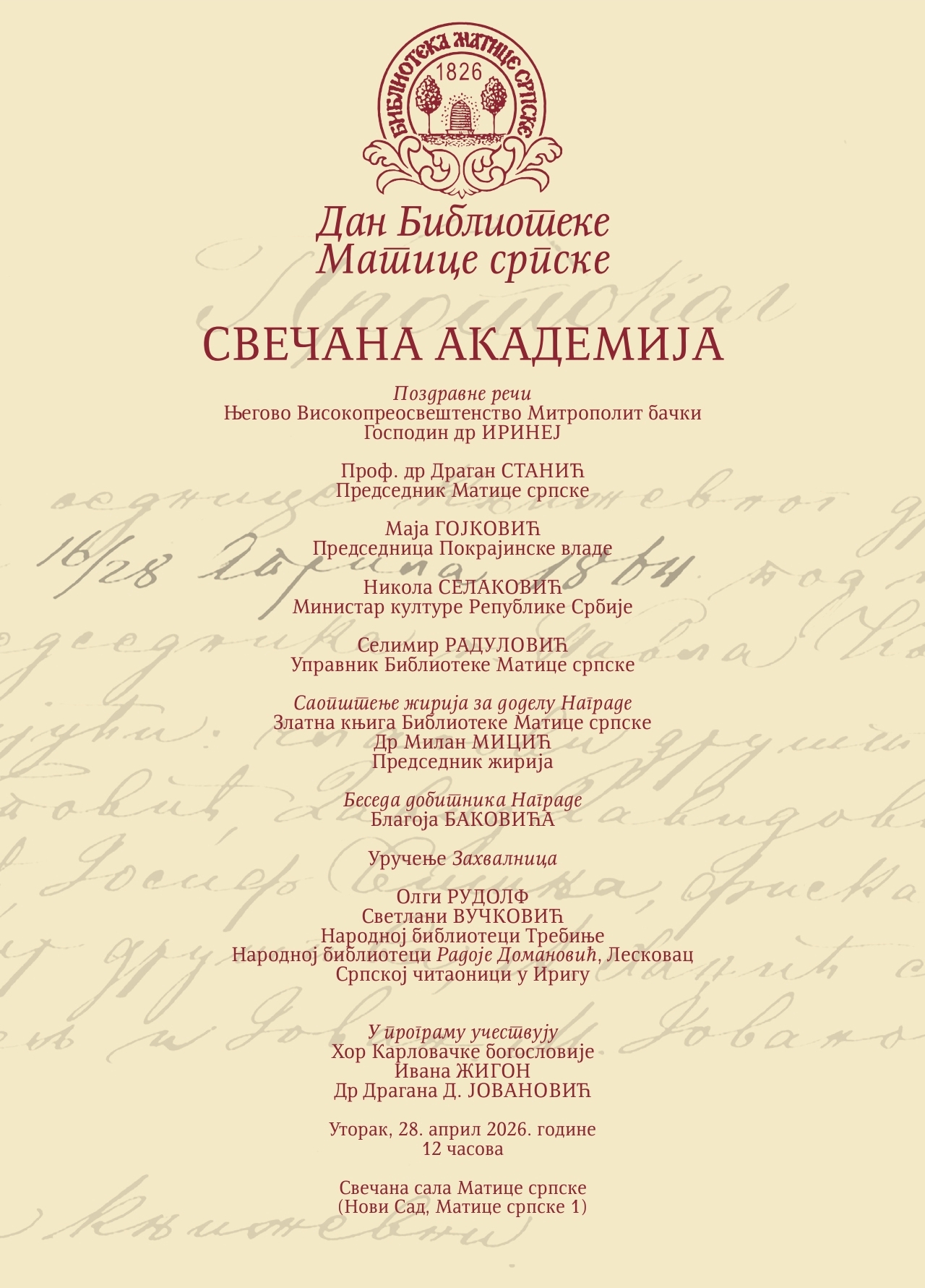 Библиотека Матице српске најстарија је српска библиотека националног значаја и прва јавна научна библиотека у Срба. Настала је 1826. године у Пешти, оснивањем Матице српске, без изричите намере, као што је и природно да се књиге окупљају у књижевном друштву. Оснивачи Матице српске, на челу са Јованом Хаџићем, записали су да им је циљ „распрострањеније књижества и просвештенија народа србског, то јест да се књиге србске рукописне на свет издају и распрострањавају”.