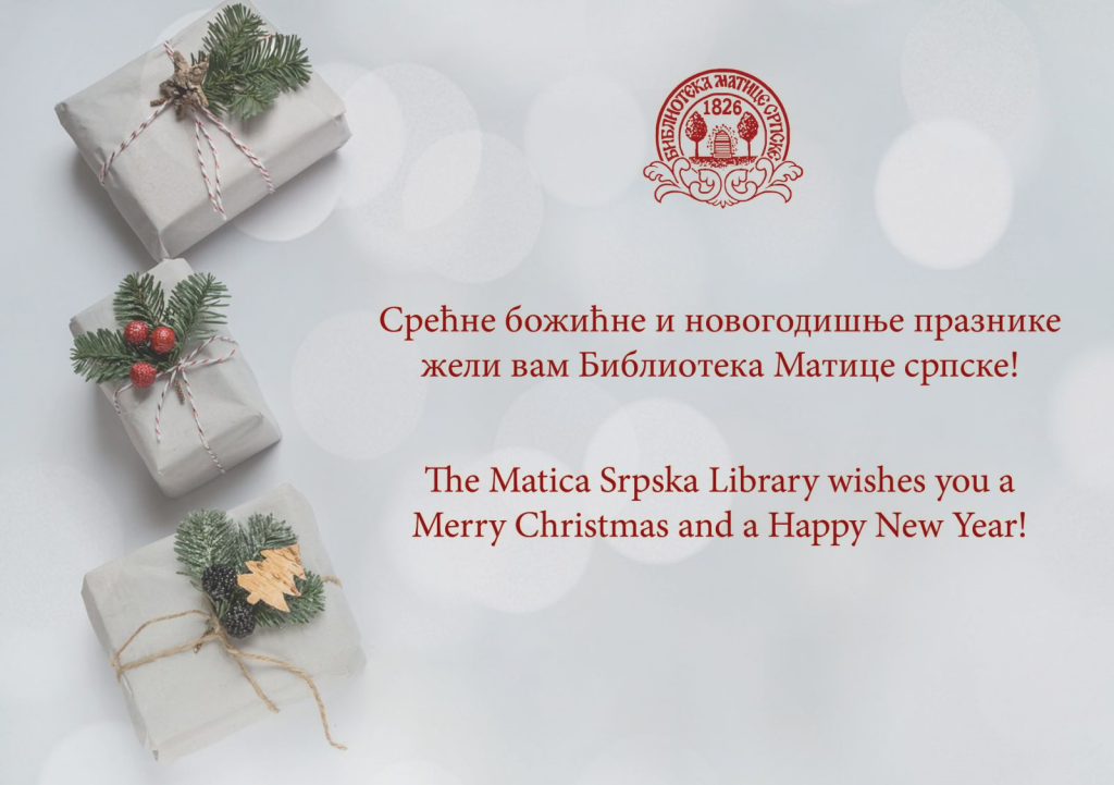 ОбавештењаЧеститка 23 дец Срећне божићне и новогодишње презнике жели вам Библиотека Матице српске! The Matica Srpska Library wishes you a Merry Christmas and a Happy New Year! „Библиографија превода словенских бајки на српски језик“ Изложба Борисав Станковић – 150 година од рођења