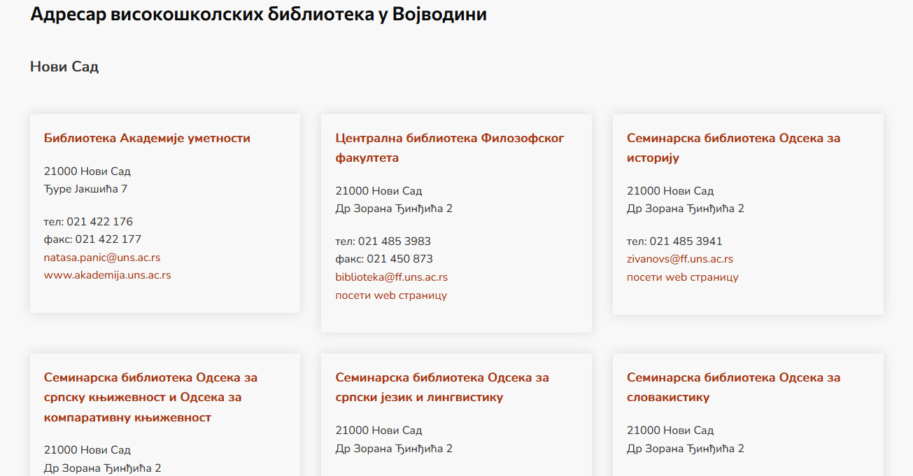 Погледајте адресар високошколских и научних библиотекаАдресар матичних и јавних библиотека у Војводини